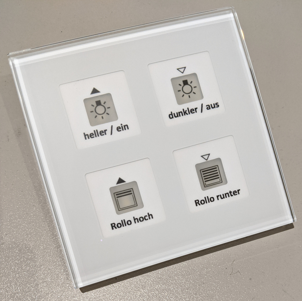 Einer der häufigsten Wünsche meiner Kunden ist, die Schalter in jedem Raum zu reduzieren. In modernen Häusern hat man in der Regel je Raum ganze Schalterbatterien: das Licht soll ein- und ausgeschaltet werden, die Rollo's rauf- und runter gefahren und die Raumtemperatur soll geregelt werden. Das macht mindestens 2 Schalter und einen Raumthermostaten.
