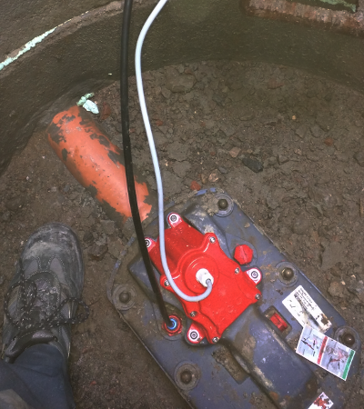 Sobald durch einen Rückstau in der Rückstauklappe ein Überdruck entsteht, wird diese motorisch geschlossen. Wenn das Abwasser in der Straße wieder normal abläuft, ist auch kein Überdruck mehr vorhanden, und die Klappe wird wieder motorisch geöffnet.